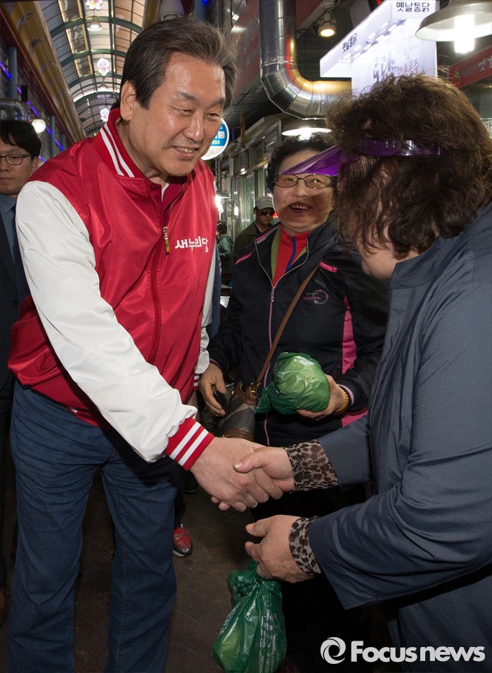 (세종=포커스뉴스) 김무성 새누리당 대표가 5일 오후 세종시 조치원읍 세종전통시장을 방문, 시민들과 인사를 나누고 있다.