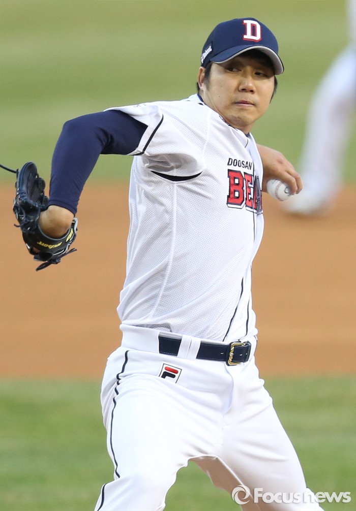 (서울=포커스뉴스) 5일 서울 잠실구장에서 열린 2016프로야구 NC-두산 경기에서 1회초 두산 선발투수 장원준이 투구하고 있다.