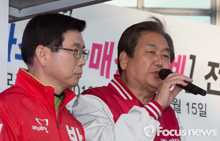 (세종=포커스뉴스) 김무성 새누리당 대표가 5일 오후 세종시 조치원읍 조치원역 앞 교차로에서 박종준 후보의 지지를 호소하고 있다.
