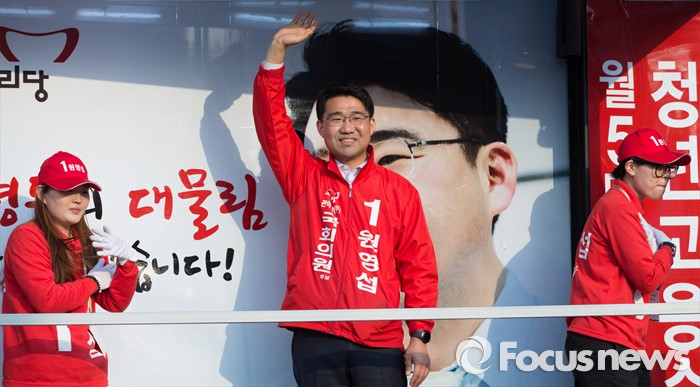 △ 손 흔드는 원영섭 후보