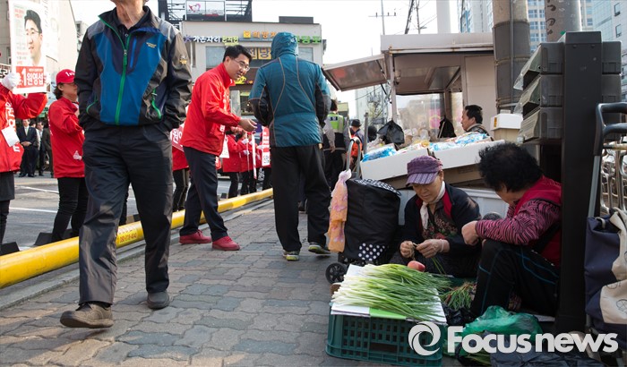 (서울=포커스뉴스) 5일 오후 서울 관악프라자센터 앞에서 원영섭 새누리당 관악구갑 후보가 선거유세를 하고 있다.