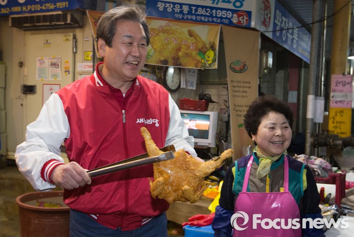 (세종=포커스뉴스) 김무성 새누리당 대표가 5일 오후 세종시 조치원읍 세종전통시장을 방문, 통닭을 튀기고 있다.