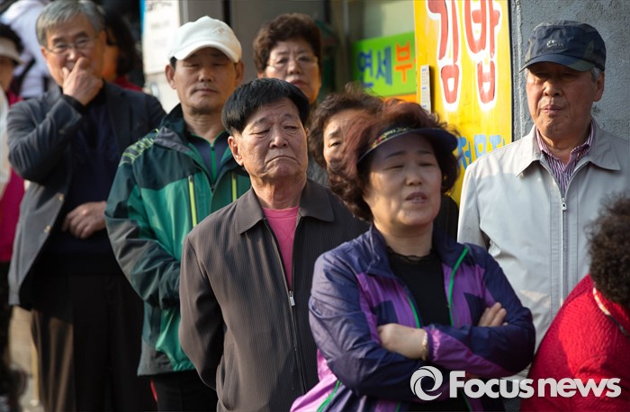 후보자 유세 듣는 시민들
