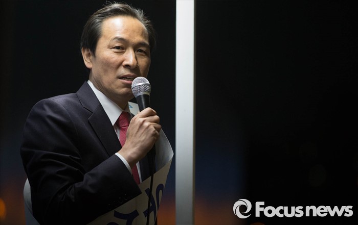 (서울=포커스뉴스) 5일 오후 서울 서대문구 아현역 인근에서 더불어민주당 우상호 서대문갑 후보가 시민들을 만나 유세를 하고 있다.