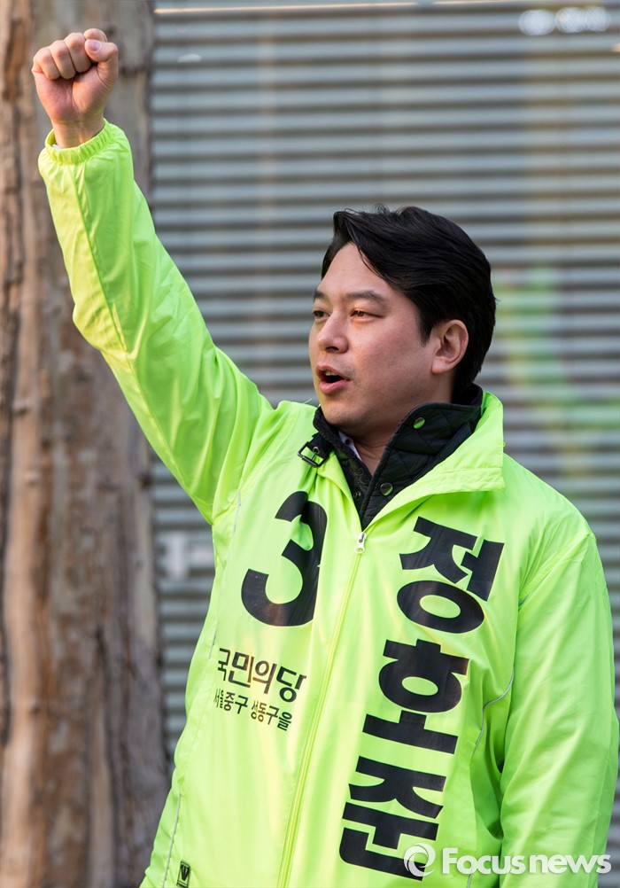 (서울=포커스뉴스) 5일 오후 서울 중구 충정로역 인근에서 선거유세에 나선 정호준 국민의당 중구성동구을 후보가 유권자들의 지지를 호소하고 있다.
