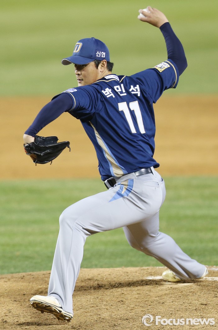 (서울=포커스뉴스) 5일 서울 잠실구장에서 열린 2016프로야구 NC-두산 경기에서 NC 투수 박민석이 투구하고 있다.