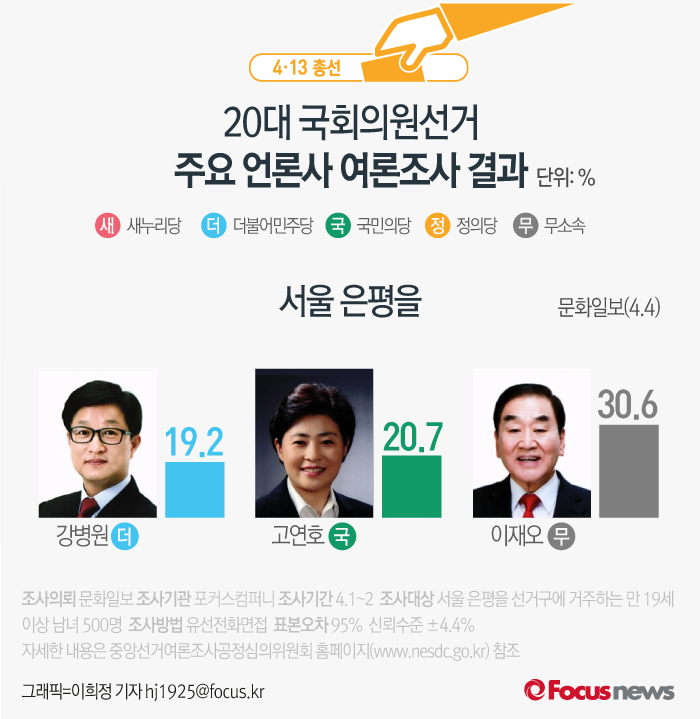[카드뉴스] 주요언론 각 지역별 여론조사 결과(은평을)
