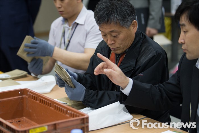 (인천=포커스뉴스) 제20대 국회의원선거 재외투표 우편물 접수 시작일인 6일 오전 인천 중구 국제우편물류센터에서 직원들이 재외투표 회송 우편물을 분류하고 있다.