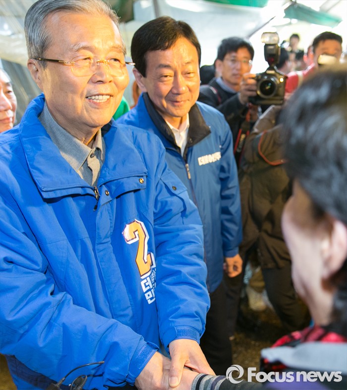 | △ 용문시장 찾아 지지 호소하는 김종인-진영 |