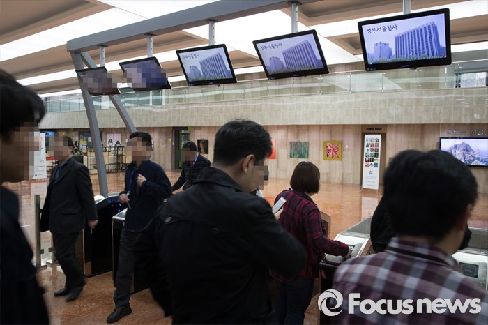 (서울=포커스뉴스) 공무원 시험 수험생이 정부서울청사내 인사혁신처 사무실에 침입해 자신의 시험 성적을 조작하는 사건이 발생해 정부청사 방호와 정보보안에 또 다시 허점을 드러냈다. 사진은 6일 오전 서울 종로구 정부서울청사 출입문의 모습.