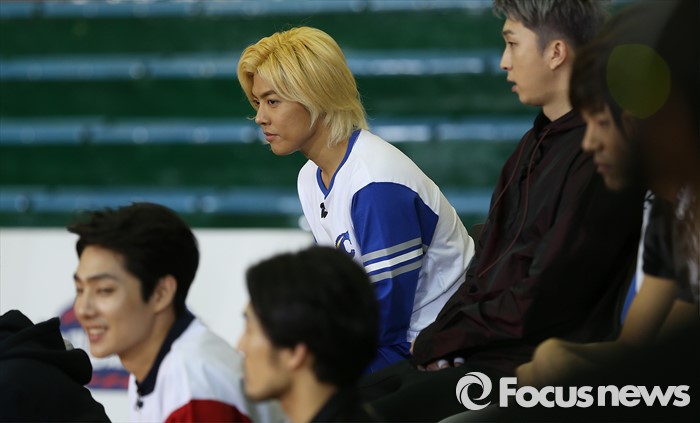 (서울=포커스뉴스) 6일 오후 서울 강서구 KBS스포츠월드에서 열린 예능프로그램 '우리동네 예체능' 촬영현장 공개 행사에 참여한 가수 강남(사진 가운데)가 녹화에 임하고 있다.