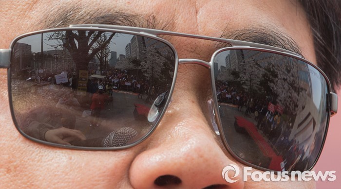 (서울=포커스뉴스) 6일 오후 서울 영등포구 국회의사당역 인근에서 열린 '장애인 정치 참여보장을 위한 범장애계 총궐기대회'에서 한 참석자가 점자정보단말기를 이용해 발언을 하고 있다.