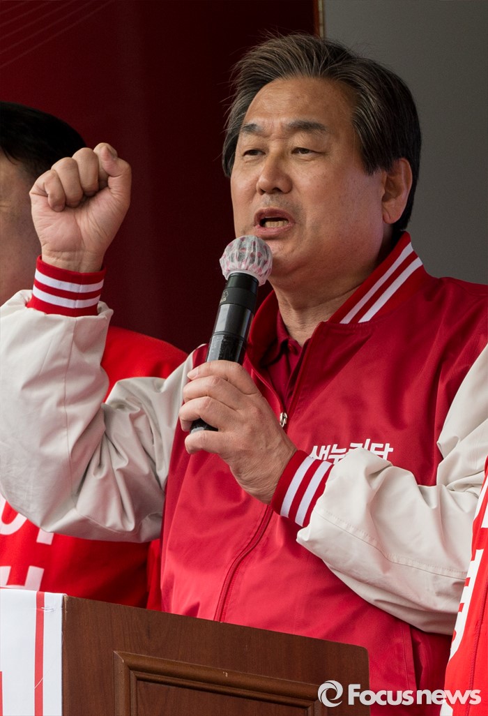 (아산=포커스뉴스) 6일 오후 충남 아산 충무로에서 이명수 새누리당 아산시갑 후보 지원유세에 나선 김무성 대표가 유권자들에게 지지를 호소하고 있다.