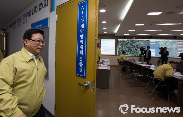 (세종=포커스뉴스) 이동필 농림축산식품부 장관이 6일 오후 세종시 정부세종청사 농식품부 방역대책상황실에서 열린 가축방역 상황점검회의에 참석하고 있다.