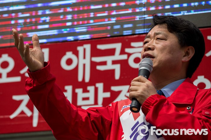 (서울=포커스뉴스) 허용범 새누리당 동대문구갑 후보가 6일 오후 서울 동대문구 제기동 일대에서 유권자들에게 소중한 한 표를 호소 하고 있다.