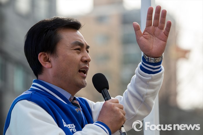 (서울=포커스뉴스) 안규백 더불어민주당 동대문구갑 후보가 6일 오후 서울 동대문구 휘경동 일대에서 유권자들에게 소중한 한 표를 호소 하고 있다.