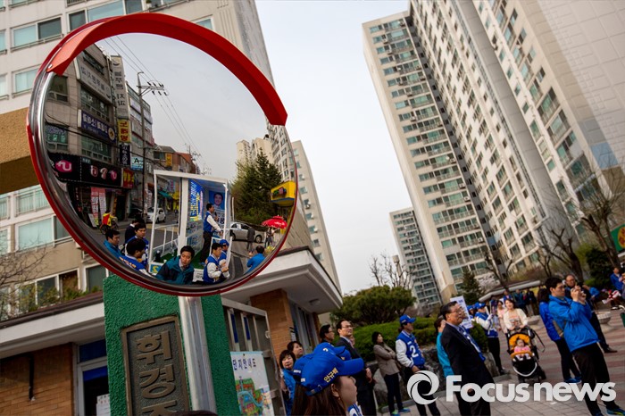 (서울=포커스뉴스) 안규백 더불어민주당 동대문구갑 후보가 6일 오후 서울 동대문구 휘경동 일대에서 유권자들에게 소중한 한 표를 호소 하고 있다.