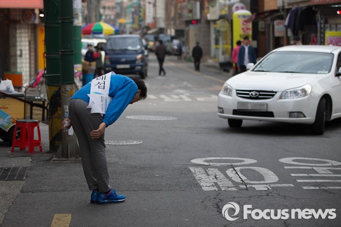 (서울=포커스뉴스) 20대 총선을 일주일 앞둔 6일 오후 서울 강서구 화곡8동 주민센터 일대에서 금태섭 더불어민주당 강서구갑 후보가 거리유세를 하고 있다.
