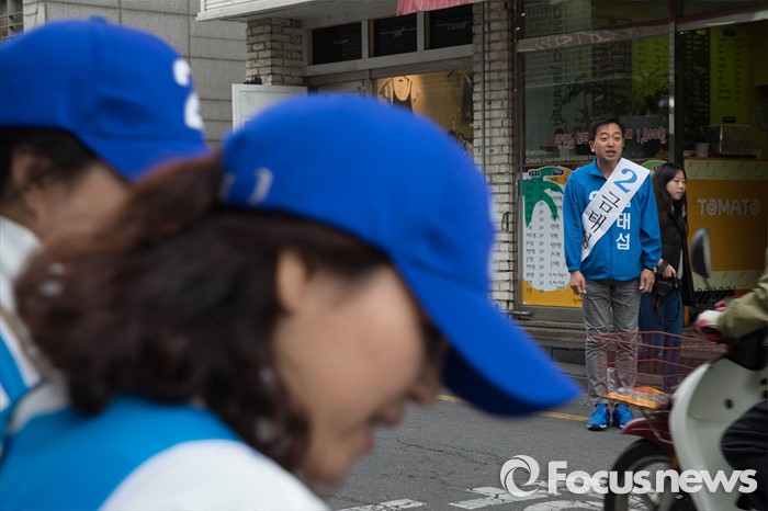 (서울=포커스뉴스) 20대 총선을 일주일 앞둔 6일 오후 서울 강서구 화곡8동 주민센터 일대에서 금태섭 더불어민주당 강서구갑 후보가 거리유세를 하고 있다.