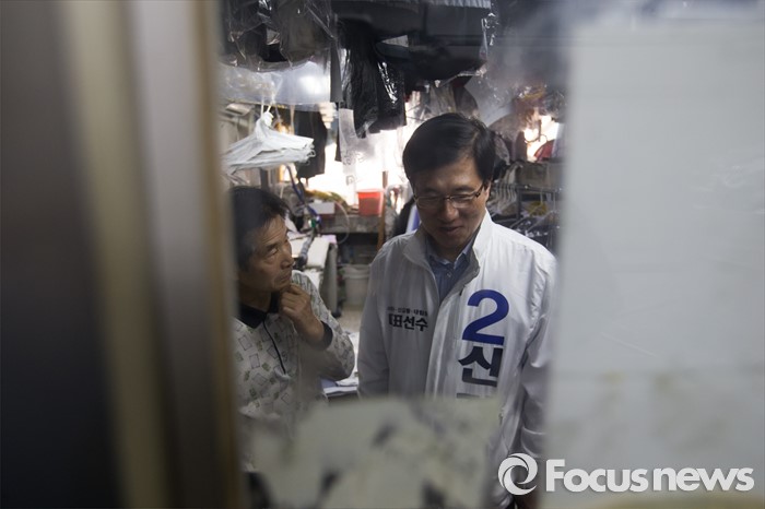 (서울=포커스뉴스) 6일 오후 서울 영등포구 한양아파트 사거리 일대에서 신경민 더불어민주당 영등포구을 후보자가 유세를 하고 있다.