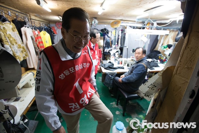 (서울=포커스뉴스) 6일 오후 서울 영등포구 대림1동 일대에서 권영세 새누리당 영등포구을 후보자가 유세를 하고 있다.
