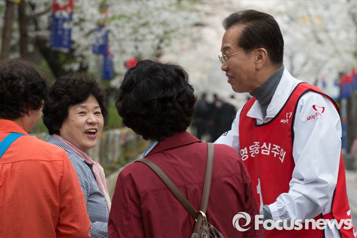 (서울=포커스뉴스) 6일 오후 서울 영등포구 대림1동 일대에서 권영세 새누리당 영등포구을 후보자가 유세를 하고 있다.