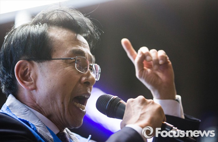 (서울=포커스뉴스) 6일 오후 서울 강동구 이마트 앞에서 심재권 후보가 김종인 더불어민주당 비대위 대표와 함께 유세를 펼치고 있다.