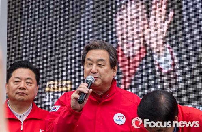 (서울=포커스뉴스) 7일 오전 서울 강서구 화곡역 사거리에서 강서구갑ㆍ을ㆍ병 후보 합동 지원유세에 나선 김무성 새누리당 대표가 후보들과 함께 유권자들에게 지지를 호소하고 있다.