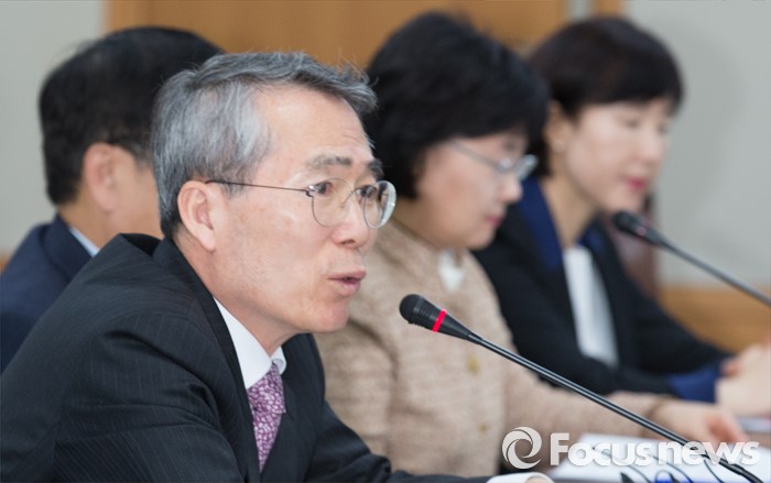 (세종=포커스뉴스) 7일 오전 세종시 정부세종청사 고용노동부 최저임금위원회 대회의실에서 열린 제1차 전원회의에서 박준성 위원장이 회의를 주재하고 있다.