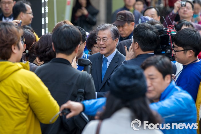 (군포=포커스뉴스) 문재인 더불어민주당 전 대표가 7일 오전 경기도 군포시 산본중심상가를 방문해 유권자들에게 이학영 군포시을 후보, 김정우 군포시갑 후보 지지를 호소 하고 있다.
