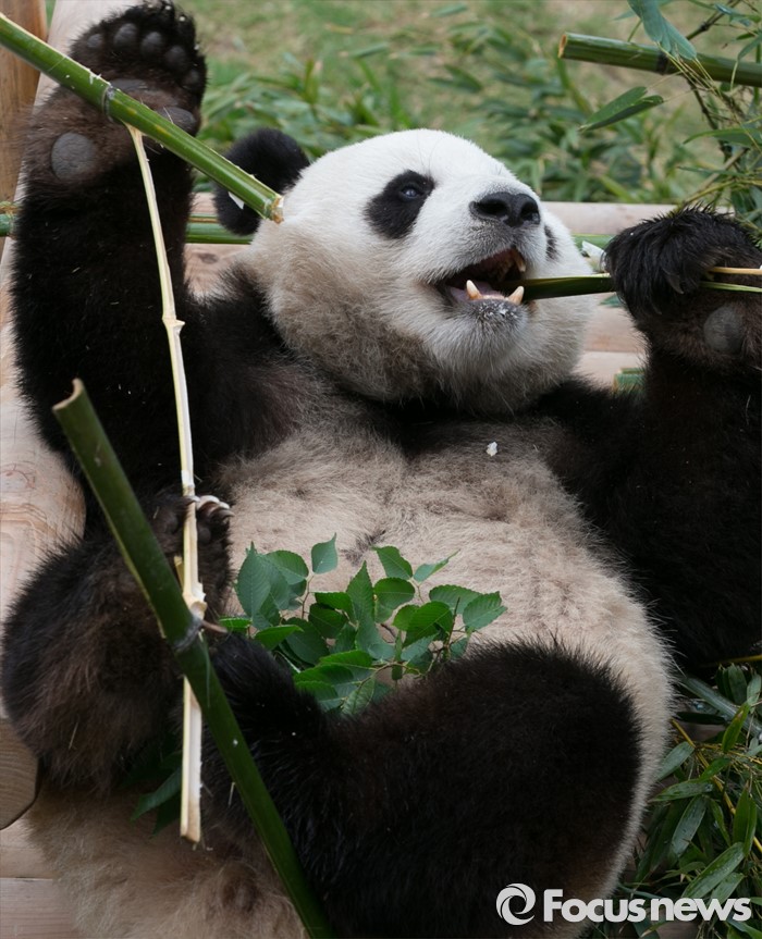(용인=포커스뉴스) 에버랜드가 오는 21일 일반관람객에게 공개를 앞두고 판다월드에서 생활 중인 시진핑 중국 국가주석의 선물 '아이바오(愛寶)'와 '러바오(樂寶)' 판다커플을 7일 언론에 공개했다. 사진은 수컷 판다 러바오의 모습.