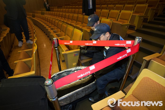 (서울=포커스뉴스) 7일 오후 서울 서초구 예술의전당 음악당에서 열린 유관 기관 합동 대테러훈련에서 경찰들이 폭발 의심물을 처리하고 있다. 이번 훈련은 공연 도중 폭발 의심물체가 발견된 상황을 설정해 훈련을 진행했다.