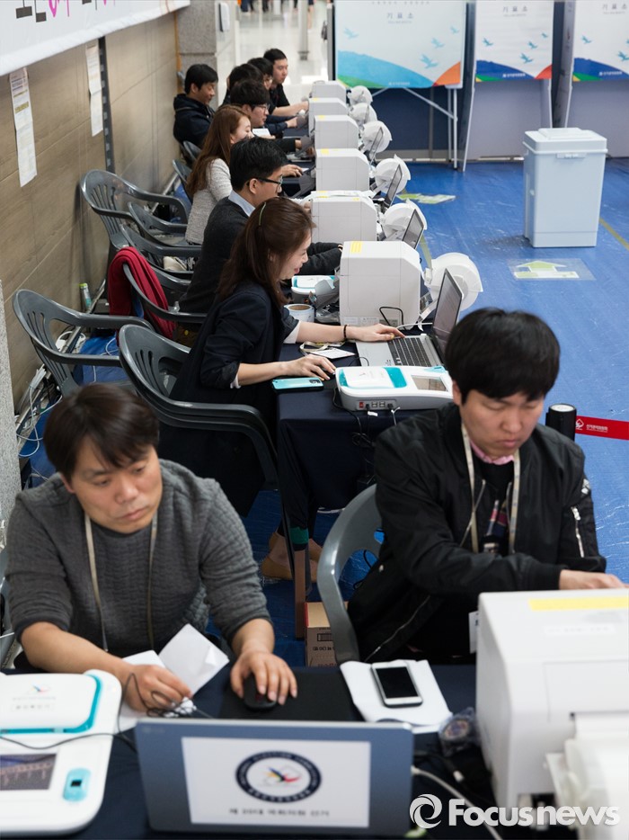 (인천공항=포커스뉴스) 제20대 국회의원 선거 사전투표를 하루 앞둔 7일 오후 인천국제공항 출국장에서 인천 선거관리위원회 관계자들이 사전투표소 설치 후 점검하고 있다.