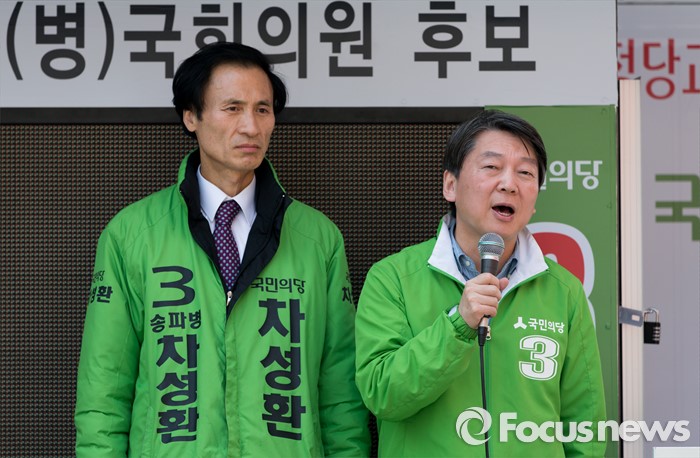 (서울=포커스뉴스) 7일 오후 서울 송파구 마천시장에서 안철수 국민의당 상임공동대표가 차성환 국민의당 송파구병 후보 지원유세를 하고 있다.