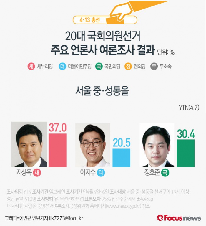 | △ [그래픽] 4·13총선 서울 중·성동을 여론조사결과 |