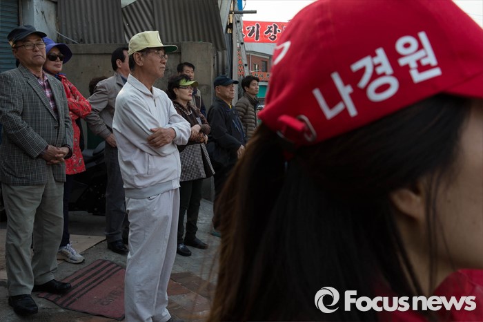 (서울=포커스뉴스) 20대 총선을 6일 앞둔 7일 오후 서울 동작구 흑석빗물펌프장 인근에서 나경원 새누리당 동작구을 후보가 선거유세를 하고 있다.