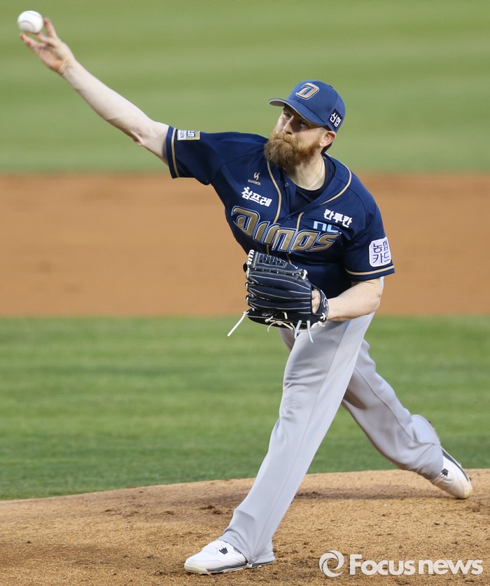 (서울=포커스뉴스) 7일 서울 잠실구장에서 열린 2016 프로야구 NC-두산 경기에서 1회말 NC 선발투수 해커가 투구하고 있다.