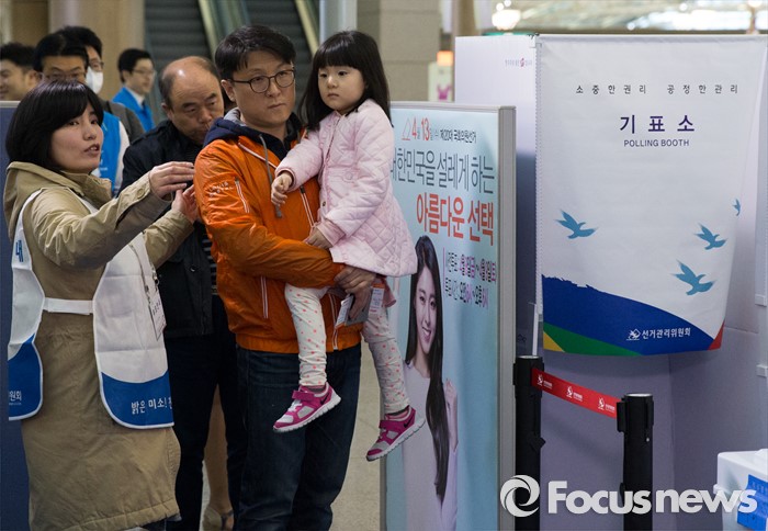 (인천공항=포커스뉴스) 제20대 국회의원 선거 사전투표 시작일인 8일 오전 인천국제공항 출국장에서 유권자들이 사전투표를 하고 있다.