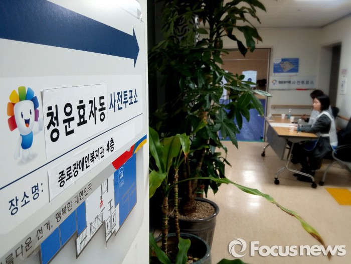 사전투표 첫날 서울 종로구 종로장애인복지관에 마련된 청운효자동 사전투표소에는 이른 시간부터 많은 유권자가 투표소를 찾아 소중한 한표를 행사했다.