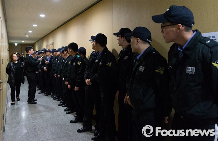 (인천=포커스뉴스) 제20대 국회의원 선거 사전투표 시작일인 8일 오전 인천 연수구 송도1동 주민센터에서 인천 중부해양경비안전본부 소속 해경들이 사전투표 전 순서를 기다리고 있다.