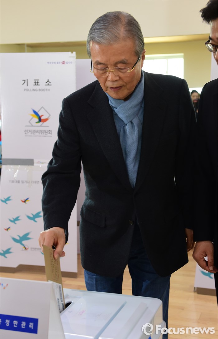 (인천=포커스뉴스) 김종인 더불어민주당 비대위 대표 겸 선대위원장이 8일 오전 인천 연수구 동춘3동주민센터에서 사전투표를 하고 있다.