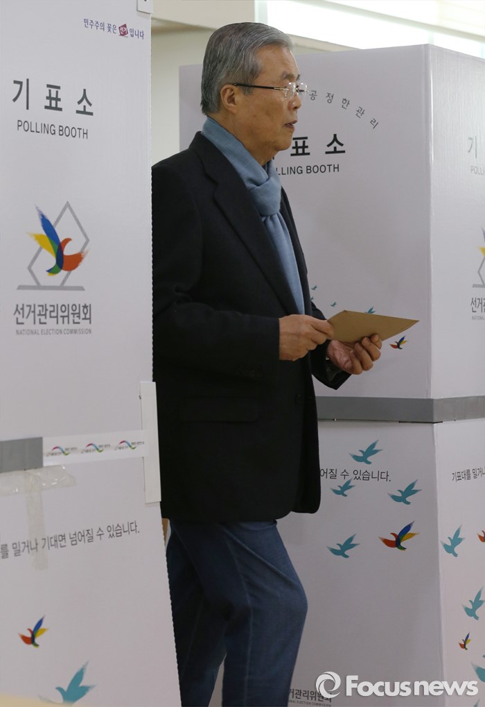 (인천=포커스뉴스) 김종인 더불어민주당 비대위 대표 겸 선대위원장이 8일 오전 인천 연수구 동춘3동주민센터에서 사전투표를 하고 있다.