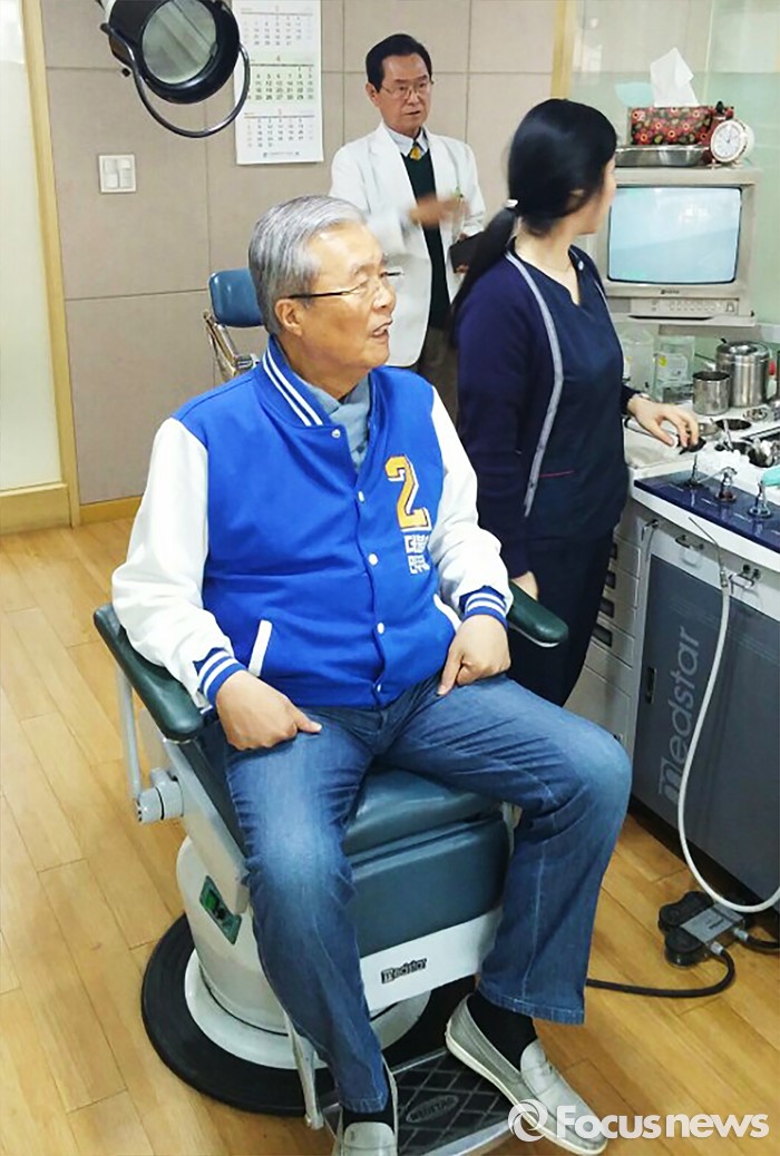 (인천=포커스뉴스) 김종인 더불어민주당 비대위 대표 겸 선대위원장이 8일 오전 인천시 지원유세 도중 부평역의 한 이비인후과에서 목 진료를 받고 있다. <사진제공=더불어민주당>