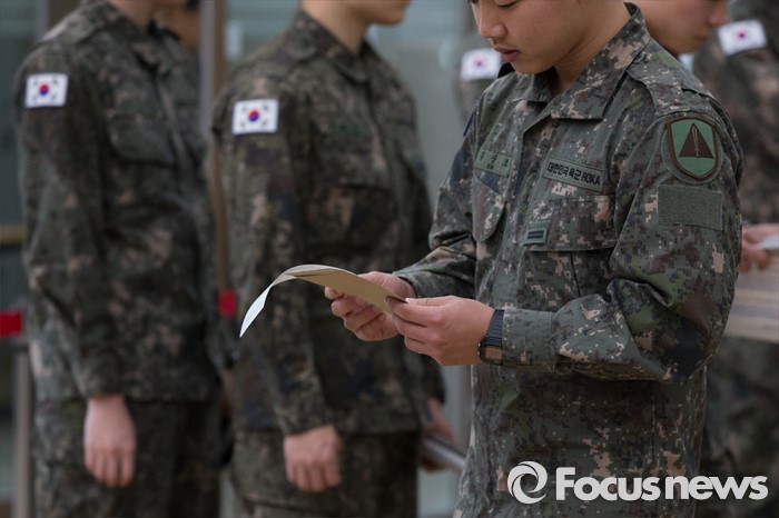 (서울=포커스뉴스) 4.13총선 사전투표 첫째날인 8일 오후 서울 서초구 방배4동 주민센터에 설치된 사전투표소에서 수방사 장병들이 투표를 하기위해 기다리고 있다.