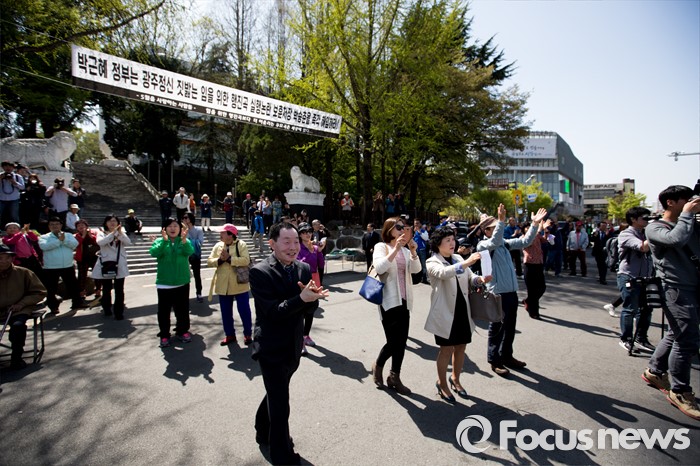 (광주=포커스뉴스) 문재인 더불어민주당 전 대표가 8일 오후 전남 광주공원에 들어서자 시민들이 박수치며 환영하고 있다.