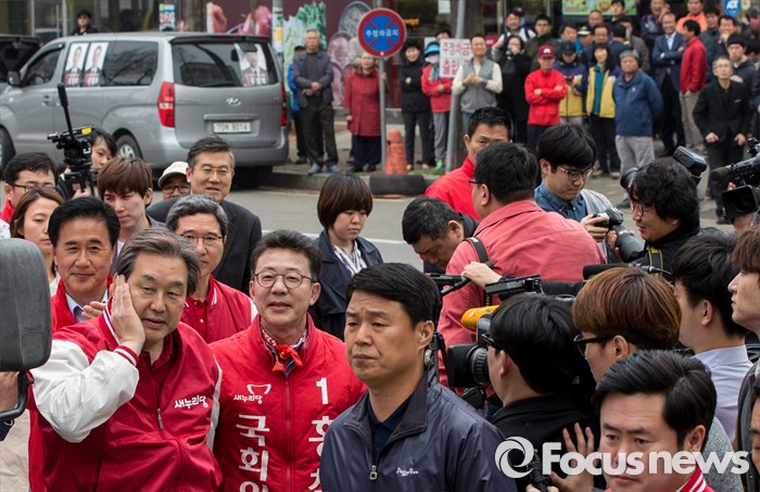 (김포=포커스뉴스) 8일 오후 경기 김포시 사우동 인근에서 김동식 새누리당 김포갑, 홍철호 김포을 후보 합동지원유세에 나선 김무성 대표가 유세를 마친 후 버스로 향하고 있다.