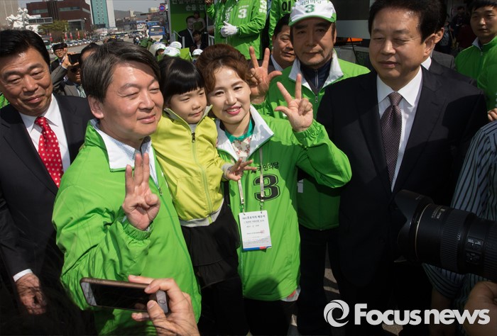 (천안=포커스뉴스) 안철수 국민의당 대표가 8일 오후 충남 천안 신부동 신세계백화점 앞에서 지원유세를 마치고 시민들과 기념사진을 찍고 있다.
