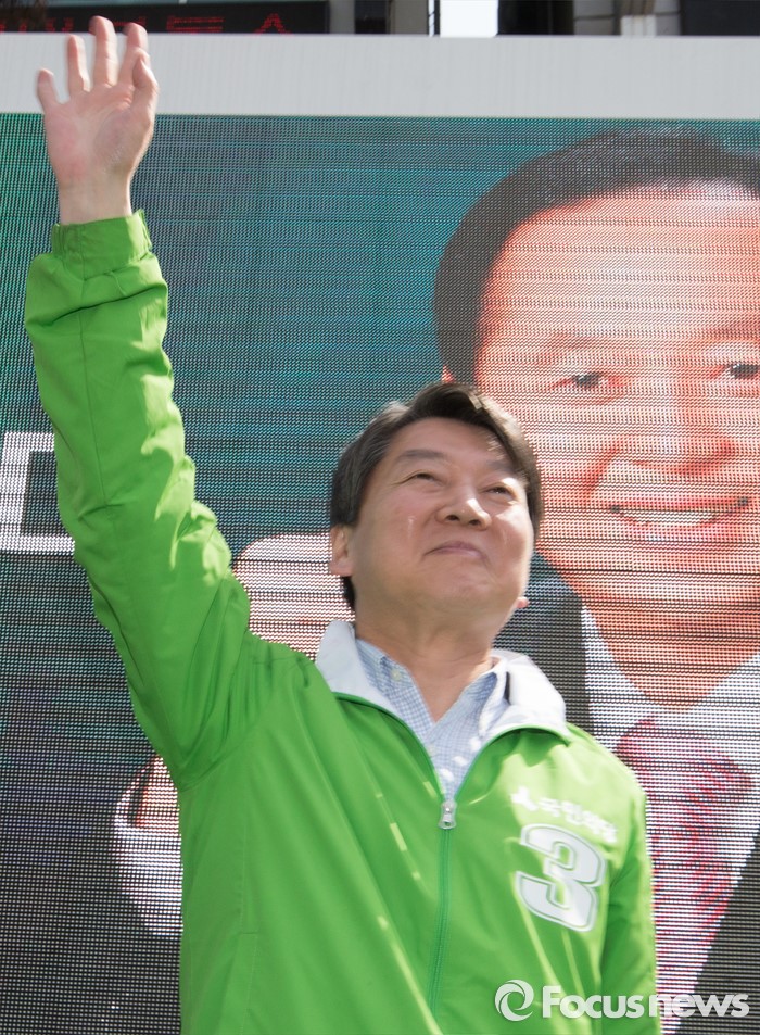 (천안=포커스뉴스) 안철수 국민의당 대표가 8일 오후 충남 천안 신부동 신세계백화점 앞에서 천안에 출마한 후보의 지지를 호소하고 있다.