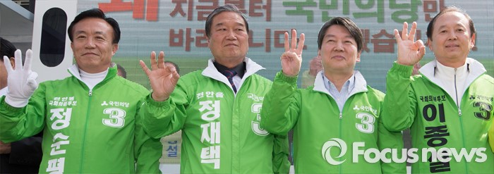 (천안=포커스뉴스) 안철수 국민의당 대표가 8일 오후 충남 천안 신부동 신세계백화점 앞에서 천안에 출마한 후보의 지지를 호소하고 있다.
