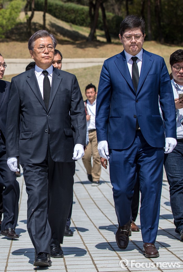한편, 문 전 대표는 '광주시민들께 드리는 글'에서 지지를 거두면 대선 불출마 및 정계은퇴 카드를 꺼내는 것에 대한 기준과 관련해선 "지금 상황이 엄중하다"면서도 구체적인 기준을 내놓지는 않았다.문재인 더불어민주당 전 대표와 김홍걸 국민통합위원장이 8일 오전 전남 광주 5.18 민주묘지를 찾아 민주열사 묘지를 둘러 보고 있다. 2016.04.08 강진형 기자